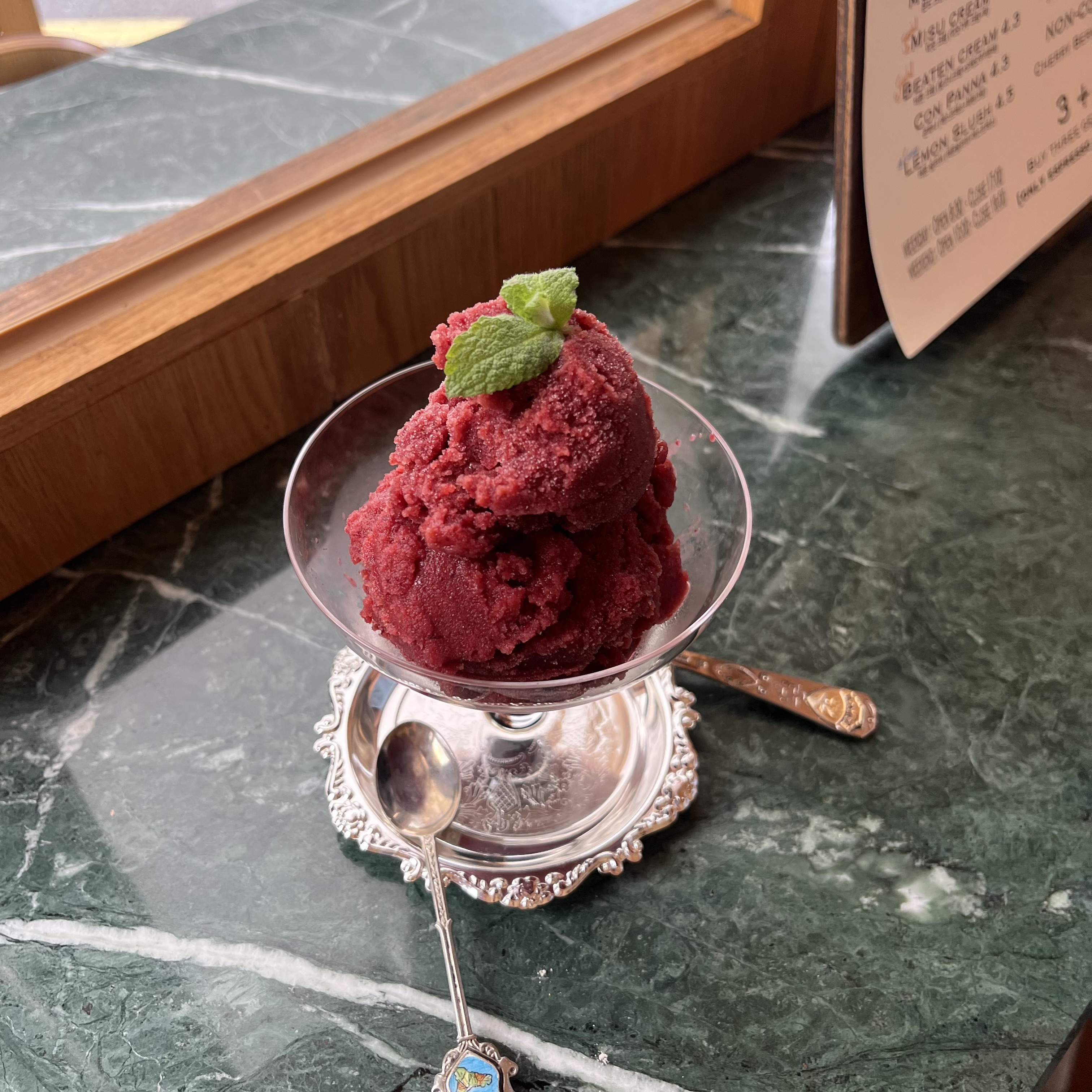 이 메뉴는 디저트 라인으로 나온 체리 샤베트입니다.